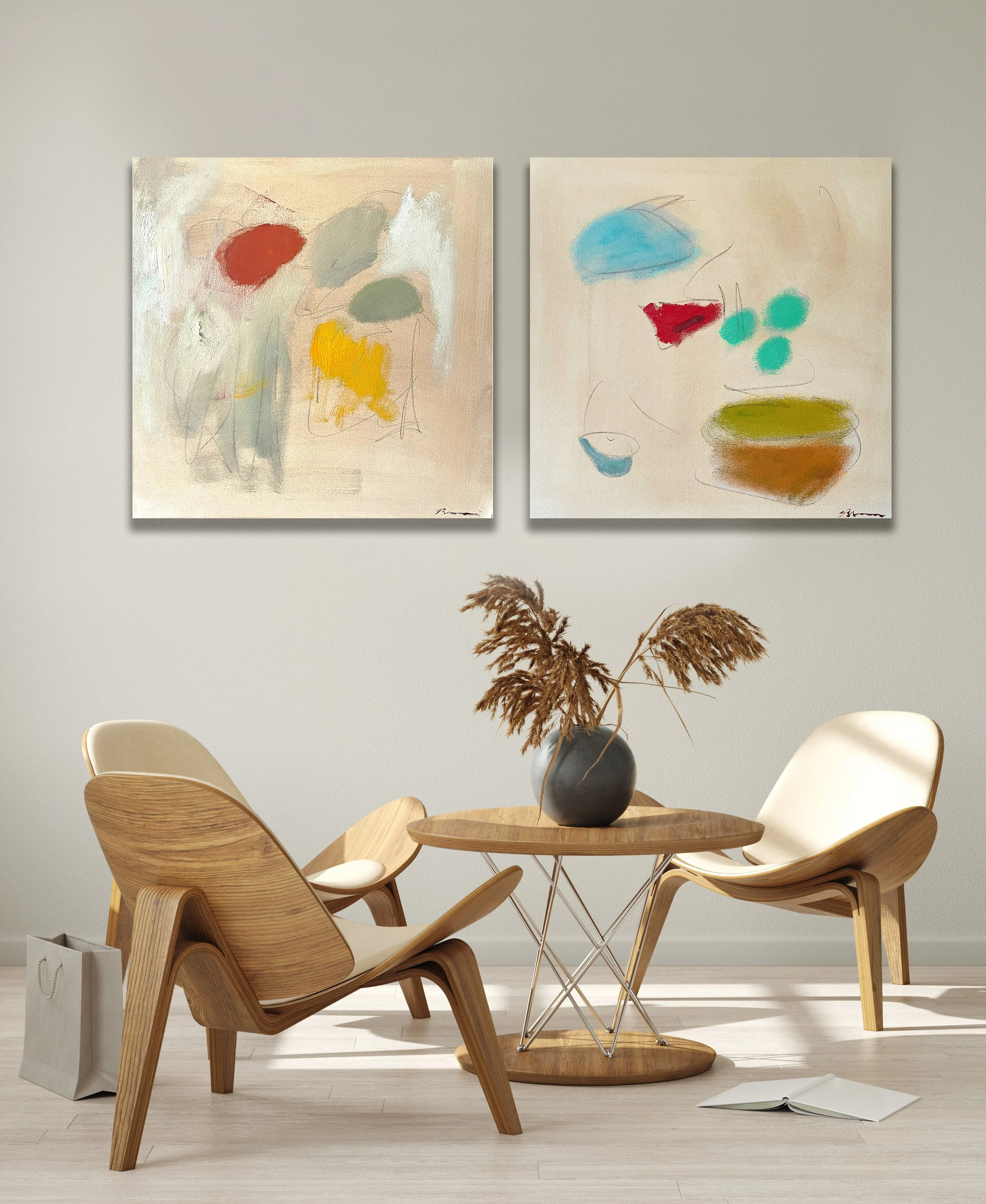 Social Club and French Connection were designed to converse—visually and emotionally. Hung together, they create a dynamic dialogue of color, texture, and personality. Whether you're drawn to the warmth of connection or the charm of cosmopolitan abstraction, this pairing brings balance and sophistication to any space.